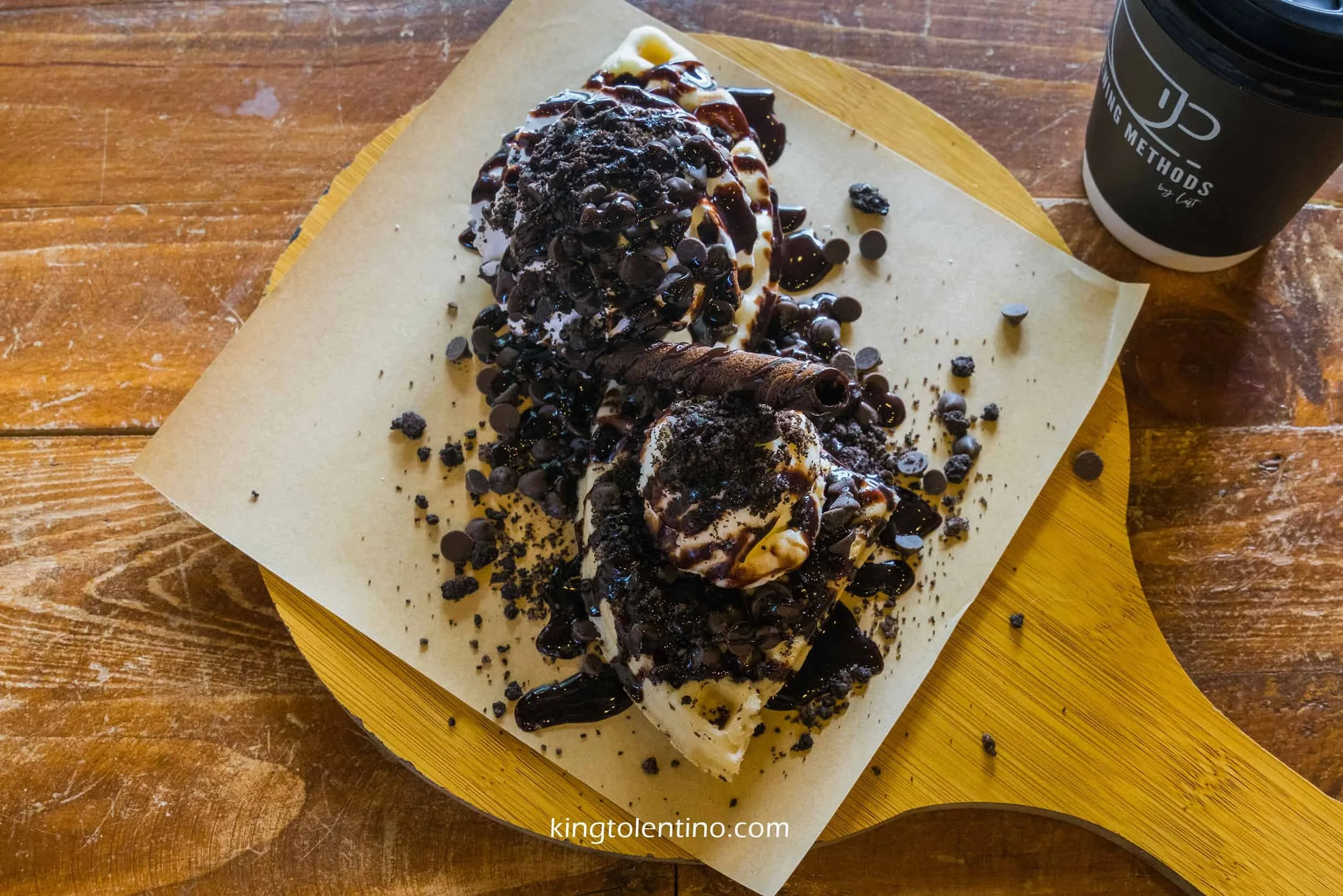 Complimenting their coffee drinks, Brewing Methods by Loft also serves waffles with six flavors to choose from. We sampled the Chocolate Chip Ice Cream Waffle.