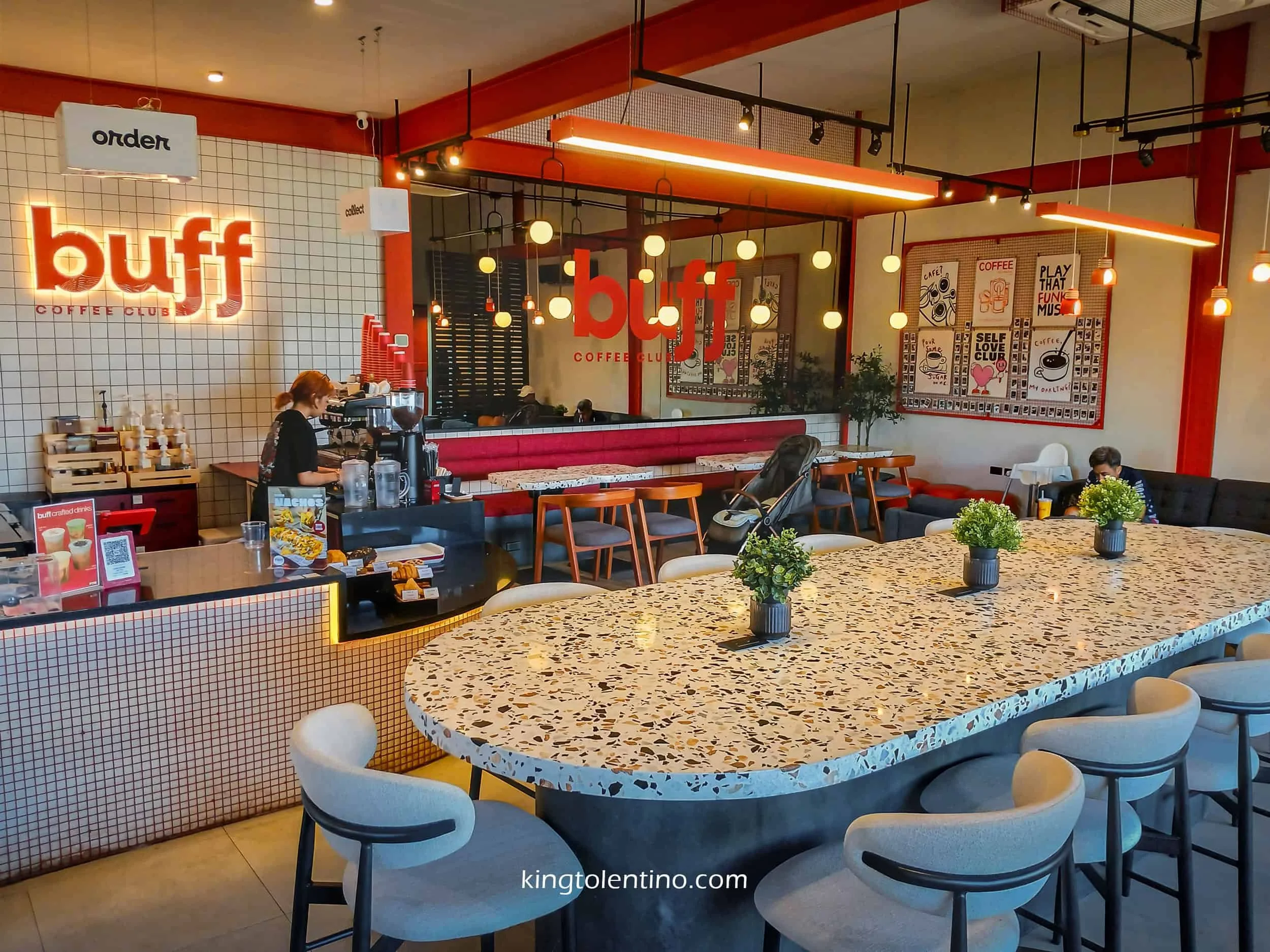Buff Coffee Club has a spacious dining area and an alfresco section, featuring a modern and cozy atmosphere.