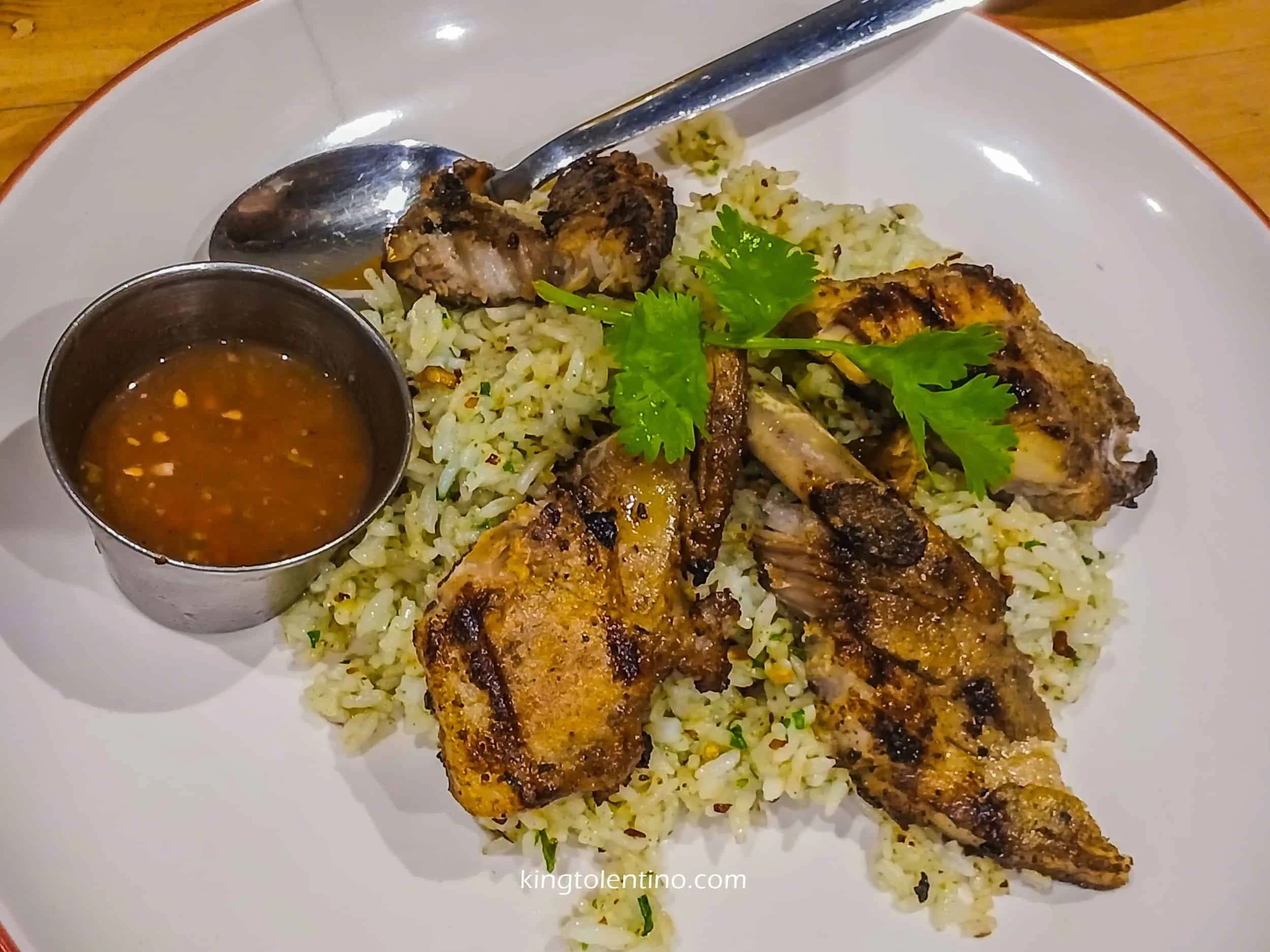 We also sampled the Grilled Pork Belly served with herb rice and a tomato-based dip.