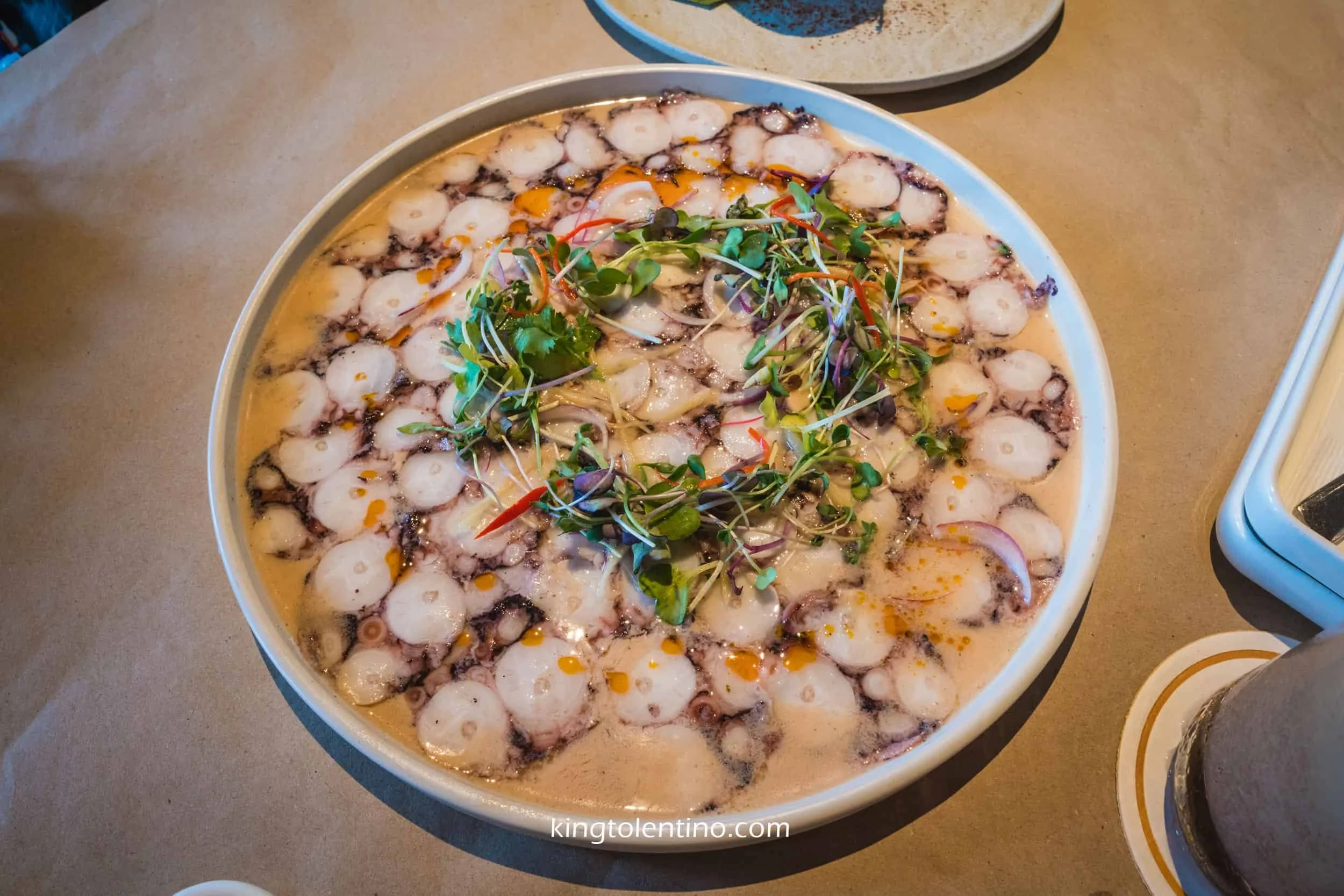 For starters, we tried one of their best-sellers, the Pugita Kinilaw. A thinly sliced octopus tentacles soaked in vinegar. While Kinilaw usually relies solely on vinegar, their version has coconut milk.