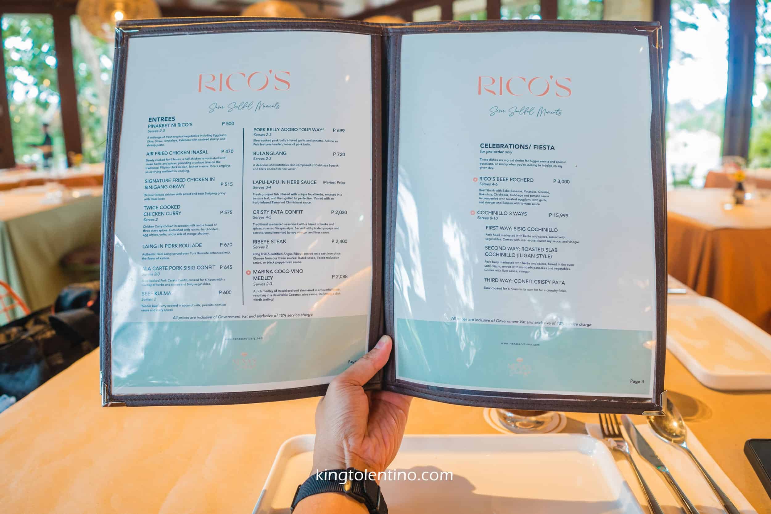 Rico's Café is a local café located at Nena’s Sanctuary in Sta. Elena Golf and Country Estate, Laguna. The concept of Rico’s Café is based on Finopino, a refined take on traditional Filipino cuisine. They uses European techniques to elevate the traditional Filipino dishes.